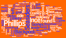 For those who missed the explanation last time, the following is a word cloud based on match reports from the BBC and Blackpool Gazette, displaying words in different sizes according to their frequency. The word cloud has been created using wordle.net.